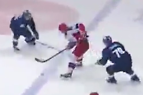 KHL-Stürmer Gratschow schiesst so scharf, dass der Puck durchs Tor hindurch fliegt