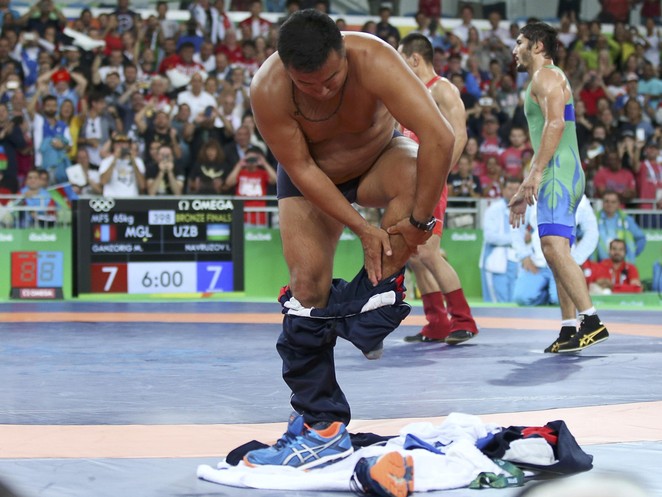 Komplett gaga! Mongolische Ringer-Trainer strippen aus Protest gegen Schiri-Entscheid