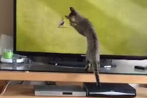 Das passiert, wenn sich eine Katze den Djokovic-Match reinzieht und auf dem Rasen plötzlich ein Vogel auftaucht
