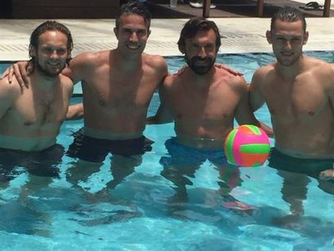Spass im Swimmingpool – Pirlo, Van Persie, De Vrij und Blind können das Ballspielen auch in den Ferien nicht lassen