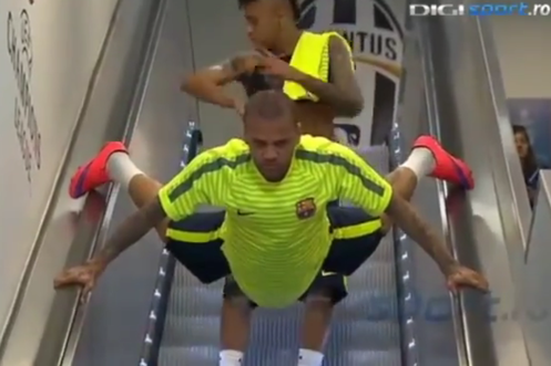 Nein, das ist nicht Superman – es ist Dani Alves beim Abschlusstraning in Berlin vor dem grossen Champions-League-Final