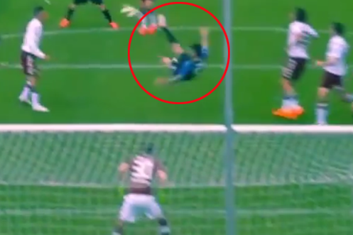 Nach diesem Traum-Seitfallzieher ist der Ball auf dem Weg ins Tor – da kommt der Mitspieler angeflogen und versaut alles