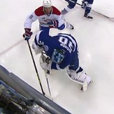 Das nenn' ich Stürmerinstinkt: Bäuchlings auf dem Eis liegend und mit dem Rücken zum Tor einhändig treffen