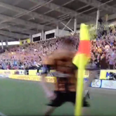 Dieser Verteidiger läuft gegen eine Wand und sieht dann auch noch Rot