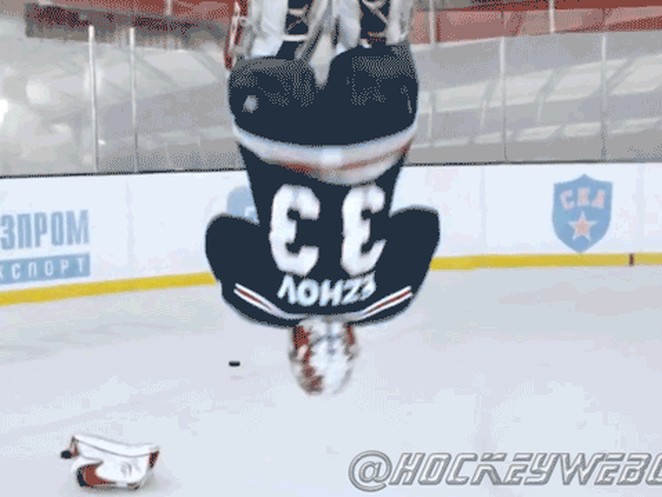 Dieser Eishockey-Goalie hat das Siegerbier schon vor dem Spiel getrunken. Vielleicht waren's auch zwei oder drei…