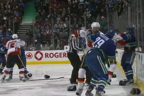 Bääm! Wer im kanadischen NHL-Derby nicht rechtzeitig da war, verpasste diese Massenschlägerei
