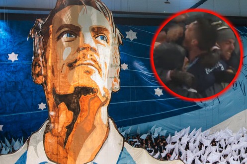 Drohne fliegt mit provozierender Flagge ins Stadion – Fans stürmen Rasen