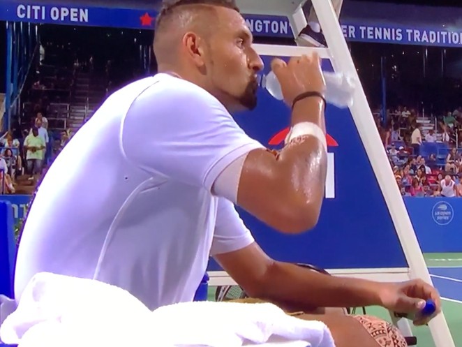 Kyrgios schleudert Wasserflasche gegen Schiri-Stuhl – seine Erklärung ist 😂😂😂
