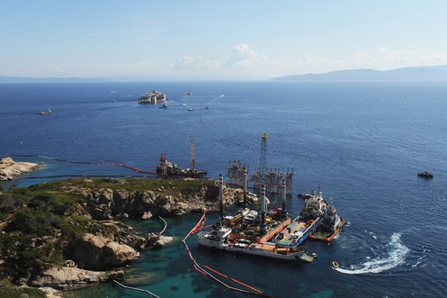 Die Costa Concordia hat mit ihren vier Schleppern Kurs auf Genua genommen