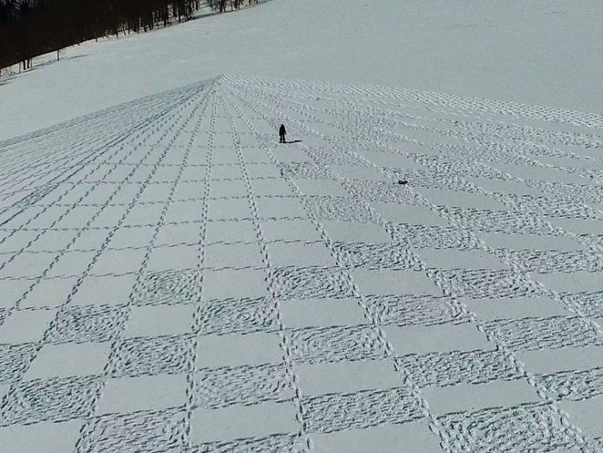 Das hält fit: Dieser Mann zaubert mit seinen Schuhen gigantische Muster in den Schnee
