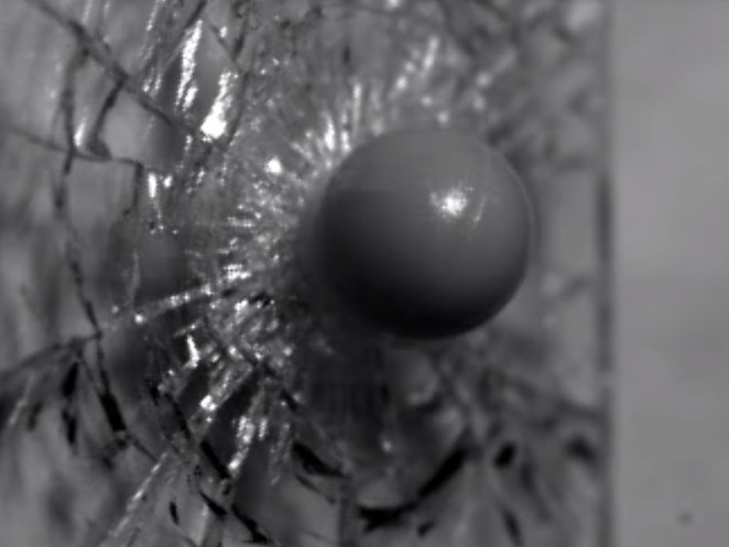 So eindrücklich kann eine Kugel eine Scheibe zertrümmern