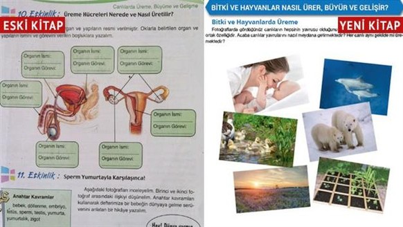 Die türkischen Erziehungsbehörden haben eine bildliche Darstellung der menschlichen Geschlechtsorgane aus einem Schulbuch für die sechste Klasse entfernt. Stattdessen zeigt das Buch jetzt Bilder von Tierfamilien, Pflanzen sowie von einer Frau mit einem Baby. Dies berichteten türkische Medien am Mittwoch.