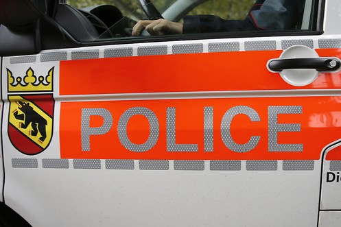 Schwer bewaffnete Polizisten umstellen das UBS-Gebäude in Lausanne