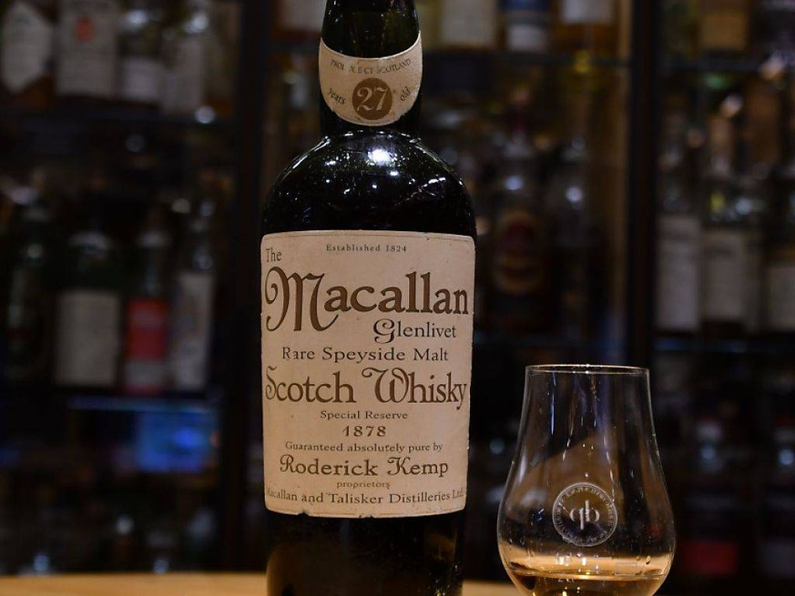 25 Jahre lang stand die teuerste Flasche unberührt im Regal der Whisky Bar des St. Moritzer Hotels, ehe ein Gast aus China sich letzten August zwei Centiliter davon gönnte. Für den angeblich 1878 destillierten Macallan zahlte der Mann sage und schreibe 9999 Franken.