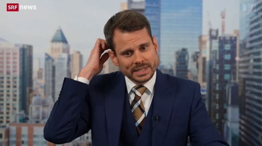 Roger Aebli, SRF-Korrespondent in New York, schafft es nicht, seine Live-Zuschaltungen zu Ende zu führen.