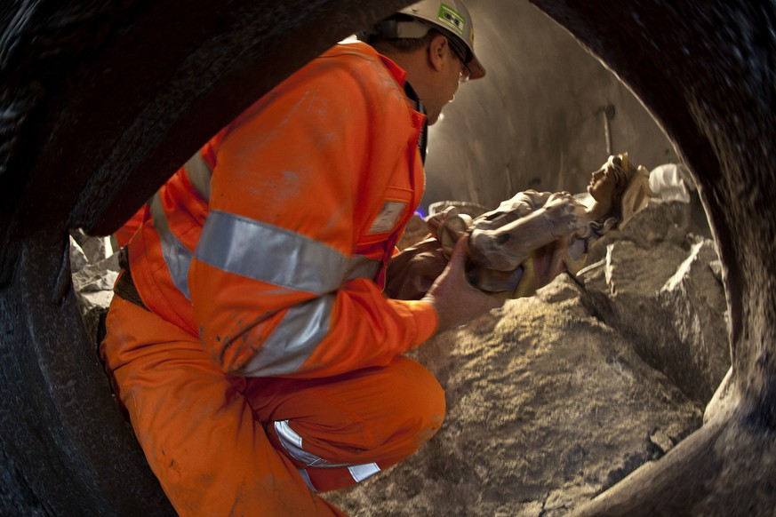 Bärs Sissi durchbohrte auch den Fels unterhalb der berüchtigten Piora-Mulde. Die Planer und Arbeiter waren nervös. Probebohrungen hatten auf katastrophale Verhältnisse hingewiesen. Doch es kam anders: Der Vortrieb war tiefer unten, als der Grossteil des bröselnden Piora-Gesteins überhaupt hinreichte. Nur heiss war es da, erinnert sich Bär. 38 Grad bei einer Luftfeuchtigkeit von über 90 Prozent. «Immer wieder gab es Wassereinbrüche. Es war 41 Grad heiss, das ist selbst zum Duschen zu heiss.»