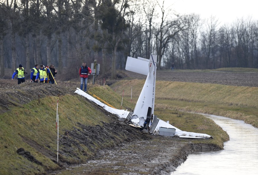 Das Flugzeug prallte am Rande des Ackers auf die Böschung eines kleinen Kanals auf, wie Bilder von der Absturzstelle zeigen. Es blieb fast senkrecht im Boden stecken. Die Nase des Zweisitzers bohrte sich bis zu den Flügeln in den Boden.