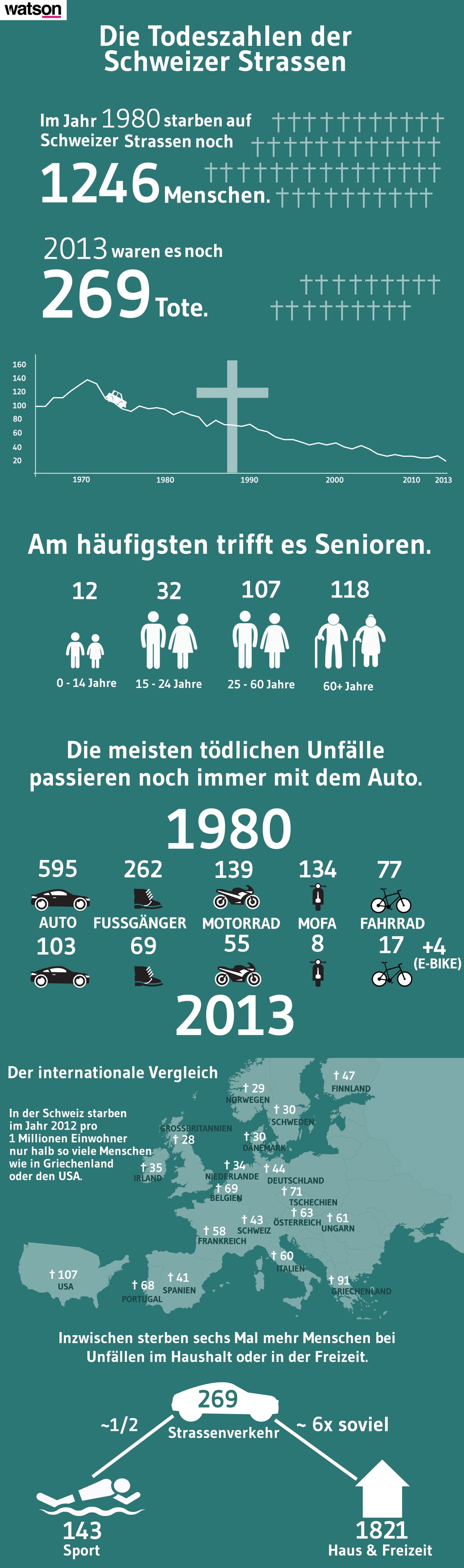 Im Jahr 1980 starben jährlich noch über 1000 Menschen im Strassenverkehr. Die aktuelle Unfallstatistik der Beratungsstelle für Unfallverhütung zeigt, dass unsere Strassen heute so sicher sind wie nie.