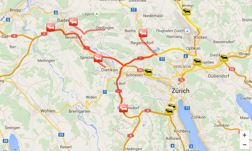 Wegen eines Falschfahrers ist es am Montagmorgen auf der A1 bei Zürich zu einer Kollision gekommen. Wegen des Unfalls kam es zu massiven Behinderungen im Verkehr. Gemäss Angaben des Touring Club Schweiz stauten sich die Autos zeitweise rund 25 Kilometer bis zur Verzweigung Birrfeld im Kanton Aargau zurück.