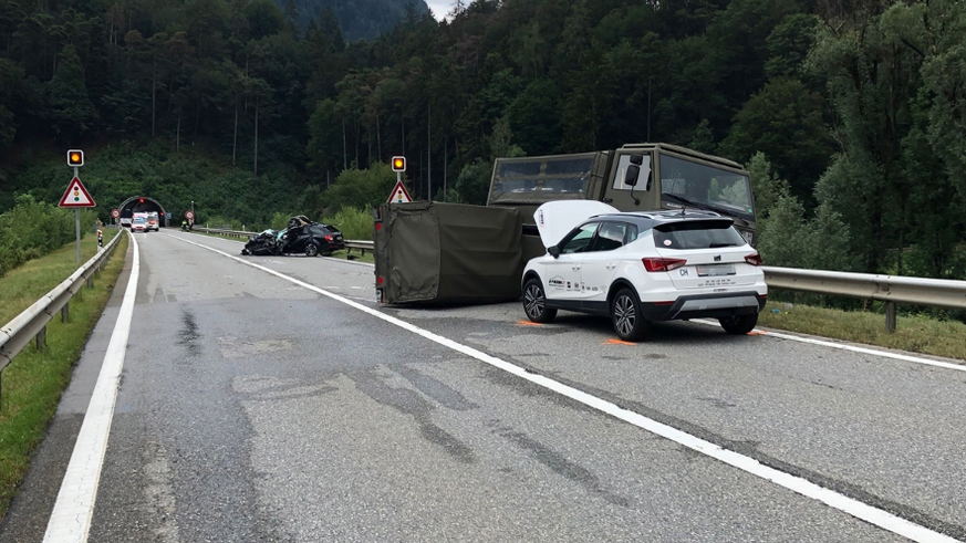 Bei einem Zusammenstoss eines militärischen Fahrzeugs auf der Autostrasse A13 bei Bonaduz GR mit zwei Autos sind fünf Personen verletzt worden, darunter ein eineinhalbjähriges Kind. Der Fahrer des militärischen Kleinlastwagens (Militär-Duro) war ab der Spur gekommen.