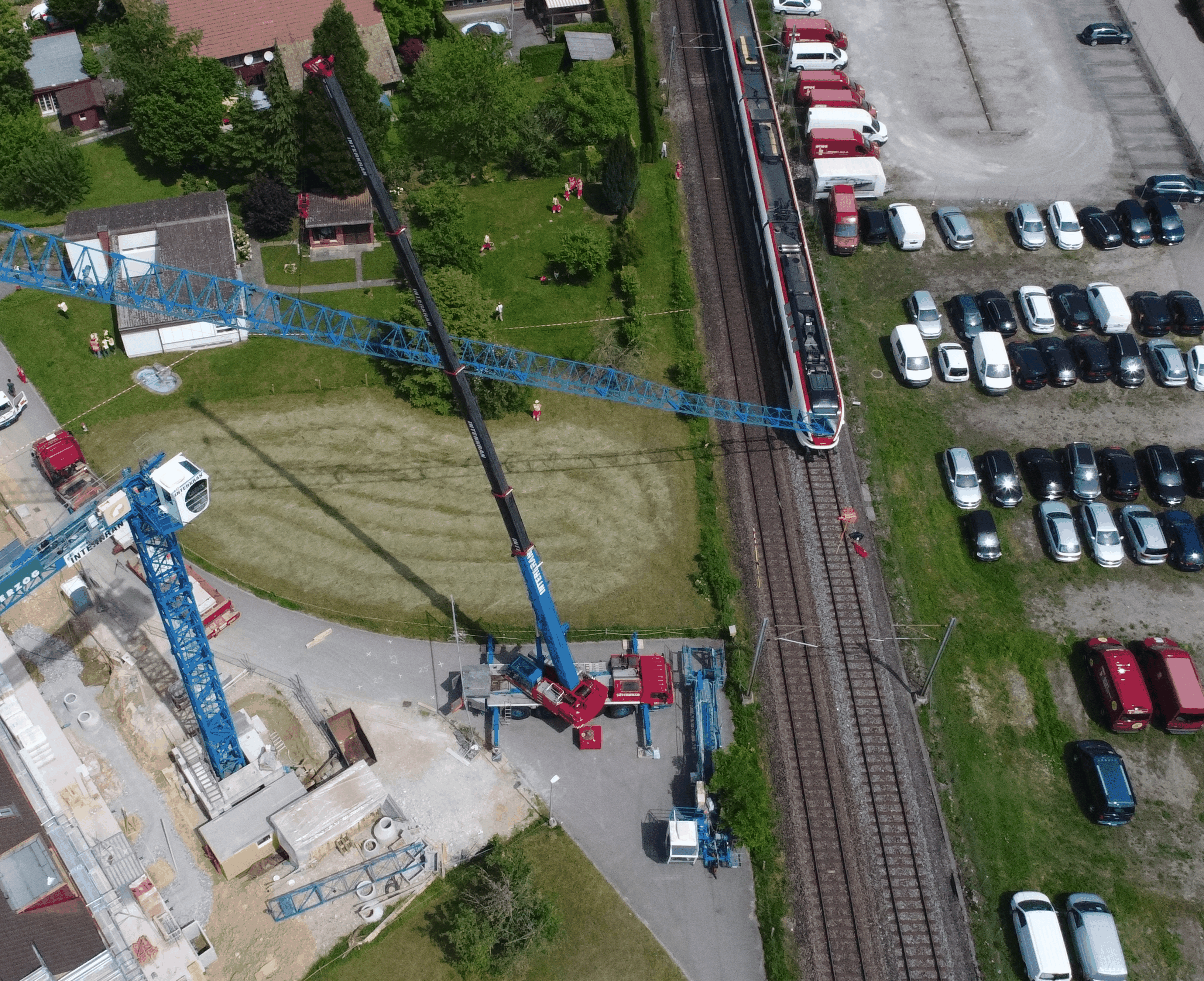 Am Samstag, kurz nach 9 Uhr, ereignete sich bei der Demontage eines Baukrans ein Zwischenfall. Der 10 Tonnen schwere und 57 Meter lange Ausleger des Baukrans war an einem Pneukran aufgehängt und krachte in die Frontscheibe eines S-Bahn.