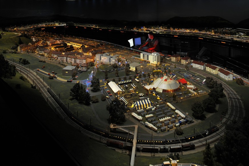 Auf drei Ebenen führen 2045 Meter Gleis durch die Räumlichkeiten. 17 Jahre wurde am Modell gearbeitet, 6500 Figuren, 300 Lokomotiven und 5400 Bäume wurden unter anderem in die Anlage integriert.