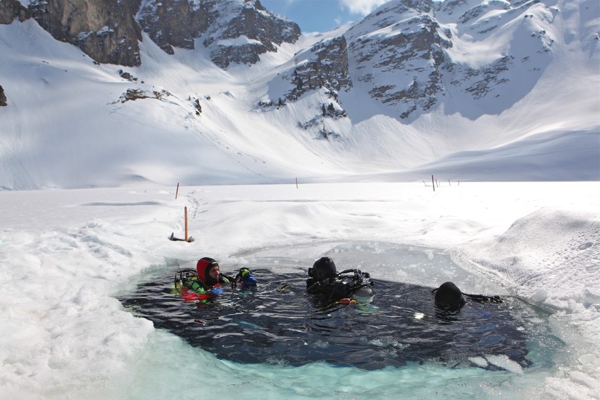 Die einsame Landschaft rund um den kleinen Bergsee auf rund 1850 Metern über Meer lädt zum Nervenkitzel unter der Eisdecke. Die «Perle der Alpenseen» mag einigen von einer Sommerwanderung von Les Mosses bekannt sein. Aber hast du gewusst, dass man hier im Winter tauchen kann?