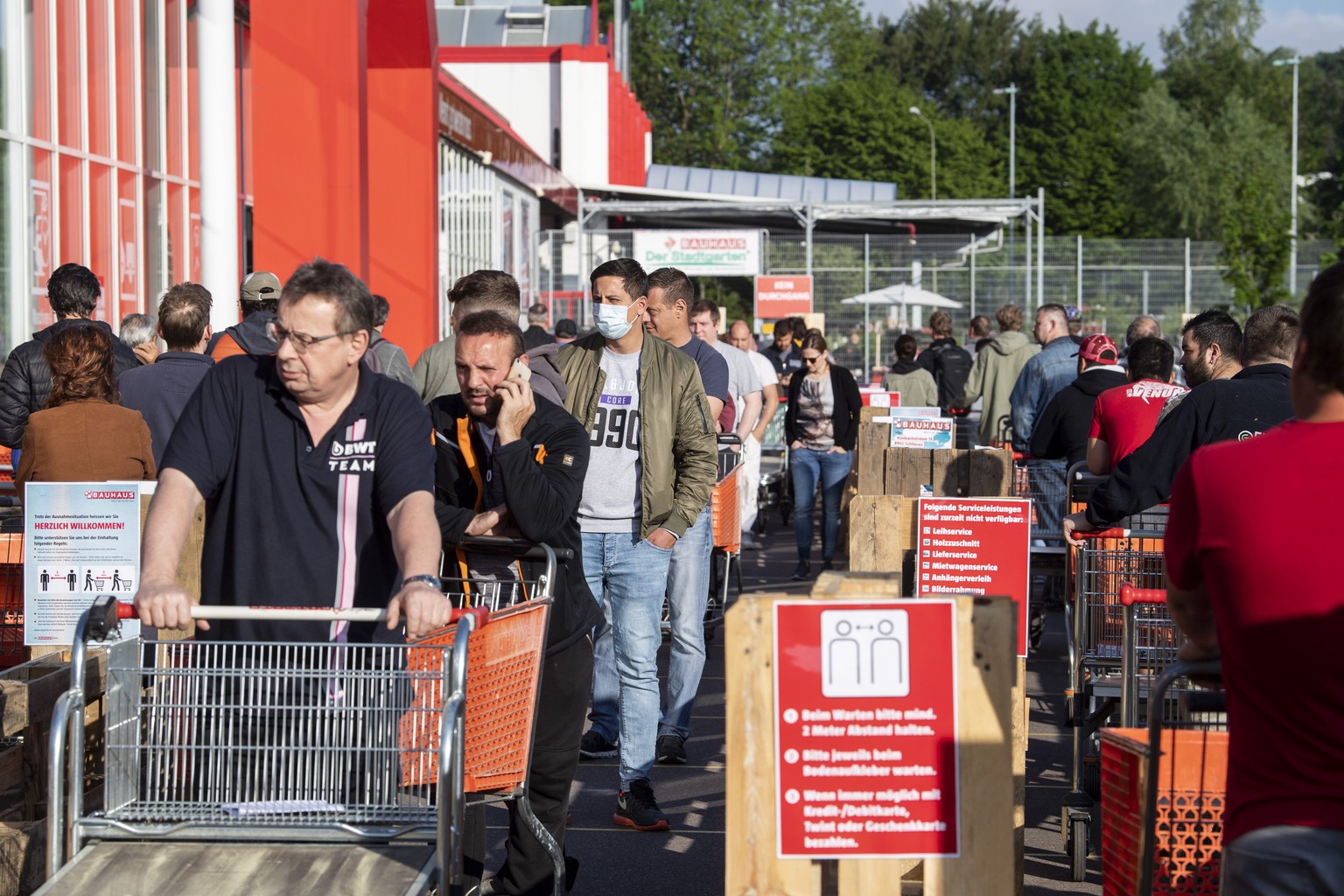 Egal ob in Zürich, Bern oder im Aargau: Bereits wenige Minuten nach der ersten Wiedereröffnung nach dem Lockdown haben sich vor einigen Baumärkten in der Schweiz lange Schlangen gebildet.