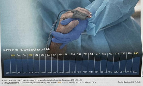 Die höchste Übersterblichkeit in der Schweiz gab es während der Spanischen Grippe 1918, bei der während fünf Monaten zwischen 60 und 150 Prozent mehr Todesfälle verzeichnet wurden als erwartet. Auf dem zweiten Platz folgen gemäss dem Bundesamt für Statistik dann bereits die Monate November und Dezember des Jahres 2020 mit jeweils 30 Prozent mehr Todesfällen.
