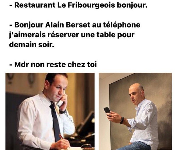 «Guten Tag, Alain Berset am Telefon. Ich hätte gerne einen Tisch für morgen Abend reserviert.»