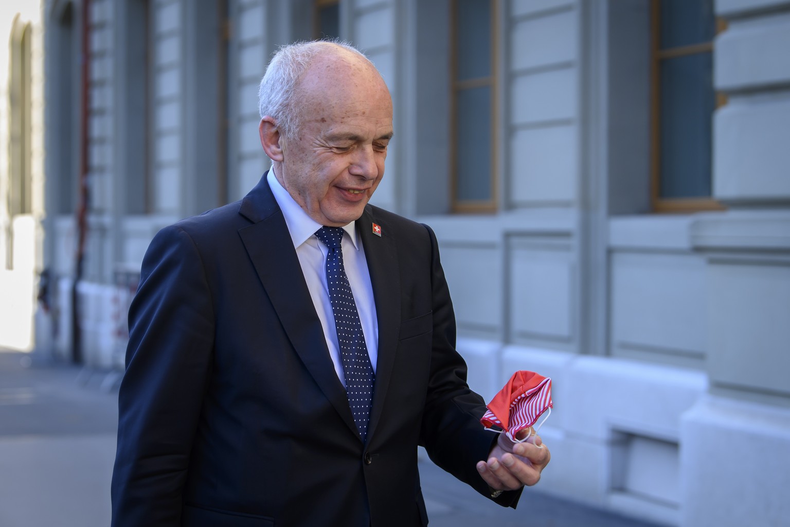 Nach der Bundesratssitzung vom Mittwoch dann die Kehrtwende: Ueli Maurer redet auf einmal den Skeptikern ins Gewissen und verteidigt Bussen für Maskenverweigerer: