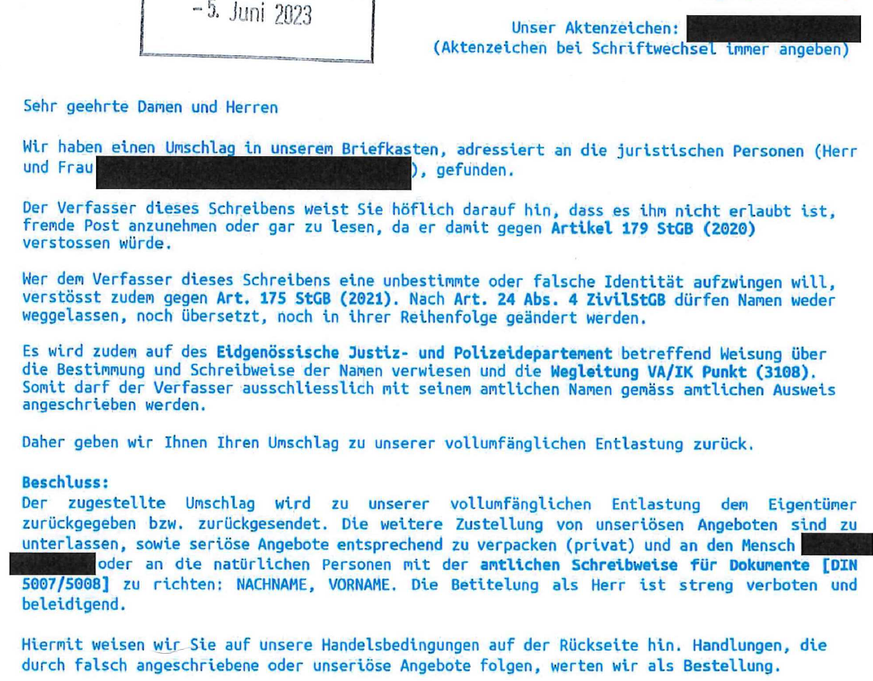 Staatsverweigerer-Schreiben 1: