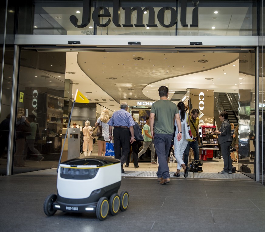 Ab dem nächsten Montag können Kunden sechs Wochen lang ihre Waren aus dem Jelmoli-Onlineshop per Lieferroboter zu sich bringen lassen. Dazu müssen sie am Ende der Bestellung auf Google Maps ihren Zustellort mit der schwarzen Nadel setzen. Dann erhält das Wägelchen die Koordinaten und fährt los.