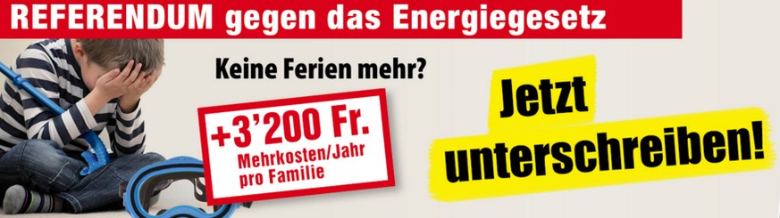 Für das Referendum gegen die Energiestrategie drückt die SVP auf die Tränendrüse: Wird sie angenommen, weinen Kinder, so die Botschaft, weil Familien wegen horrender Mehrkosten nicht mehr in die Ferien fahren könnten. Das ist nicht nur arg weit hergeholt, sondern auch mit falschen Zahlen belegt. Während die Rechtspartei von 3200 Franken Mehrkosten spricht, kommt die «Sonntagszeitung» in ihrer Rechnung auf maximal 150 Franken Aufpreis pro Jahr (für einen vierköpfigen Haushalt). Das ist immerhin 20 Mal weniger als die SVP.