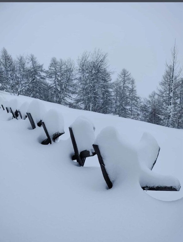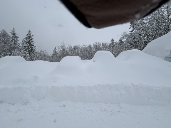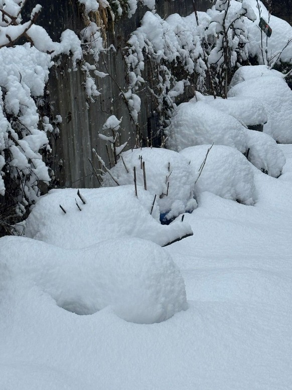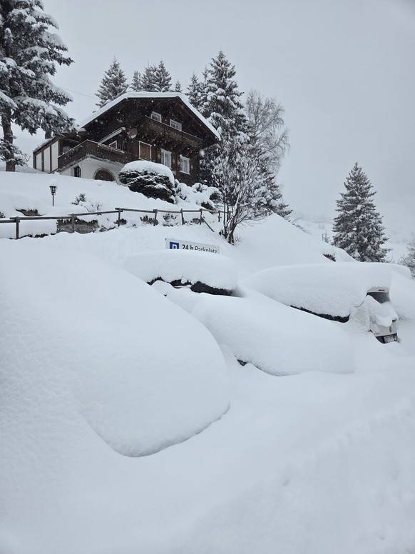 Ein watson-User schickt uns dieses Bild von einem Parkplatz in Anzère, einem Feriendorf im Kanton Wallis: Er schreibt dazu: «Es schneit seit 36 Stunden am Stück.»
