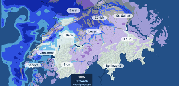 Aktuell liegt die Schneefallgrenze im Norden der Schweiz auf 500 bis 700 Metern. Bis zum Samstag wird sie aber bis auf 1400 Meter steigen. Ab Sonntag winken im Norden dann wieder Maximaltemperaturen von bis zu 14 Grad und eventuell sogar der eine oder andere Sonnenstrahl.