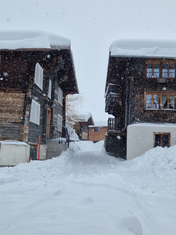 Diese Leserbilder aus Blitzingen im Kanton Wallis zeigen: Teilweise liegt der Schnee hier bis zu 80 Zentimeter hoch.