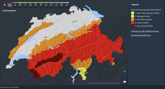 - Der Bund hat für Teile des Wallis wegen akuter Lawinengefahr gar die höchste Gefahrenstufe ausgerufen. Es kommt zu erheblichen Vekehrseinschränkungen.
