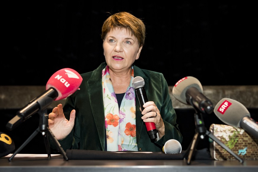 Viola Amherd, conseiller nationale valaisanne PDC, parle lors d'une conference de presse lconcernant l'election complementaire au Conseil federal ce jeudi 8 novembre 2018 a Brigue. (KEYSTONE ...