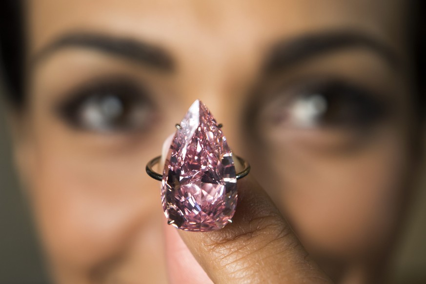 Es dauerte gerade mal 3,5 Minuten. Dann hat sich ein anonymer Bieter per Telefon gegen zwei Konkurrenten durchgesetzt und sich für 18.1 Millionen Franken einen der weltweit spektakulärsten rosafarbenen Diamanten gesichert.