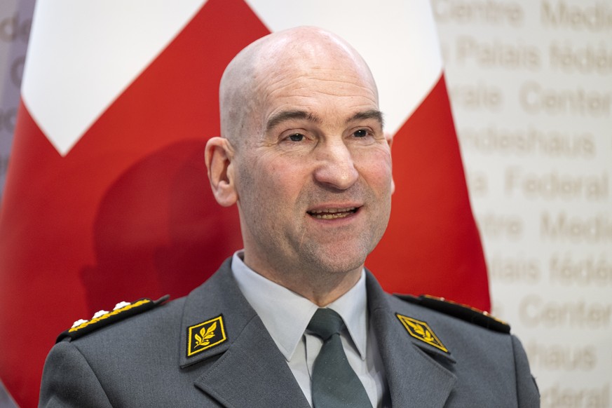 Korpskommandant Thomas Suessli, Chef der Armee spricht an einer Medienkonferenz, am Mittwoch, 26. Februar 2025, in Bern. (KEYSTONE/Peter Schneider)