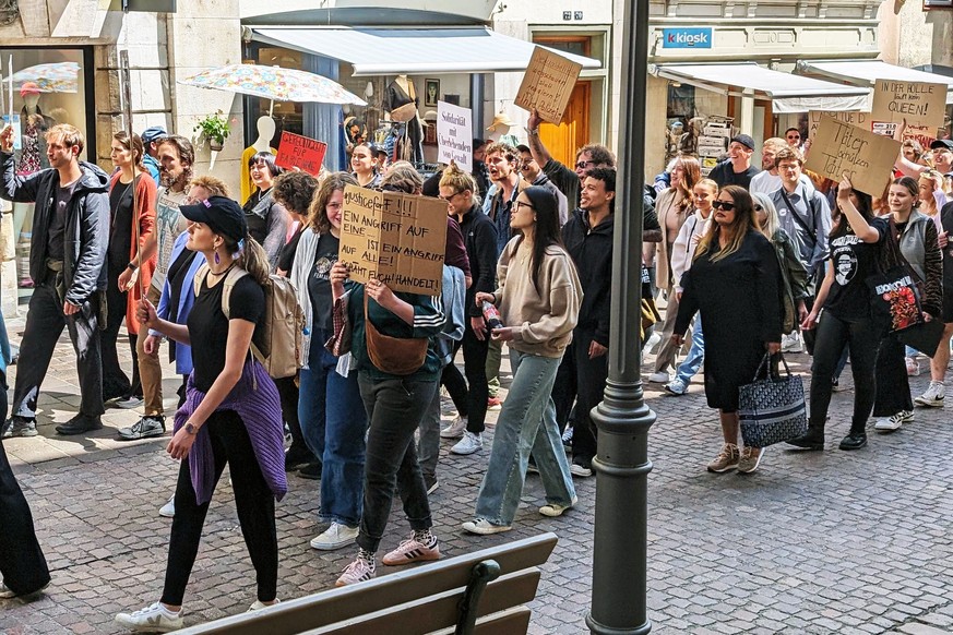 In der Folge wurde in den sozialen Medien zu einer Kundgebung aufgerufen. Am Samstagmorgen versammelten sich deshalb nach Angaben eines Reporters der Nachrichtenagentur Keystone-SDA mehrere hundert Personen zuerst vor dem Posten der Schaffhauser Polizei und dann vor dem Regierungsgebäude. Kurz vor 12 Uhr starteten sie einen Umzug durch die Altstadt.