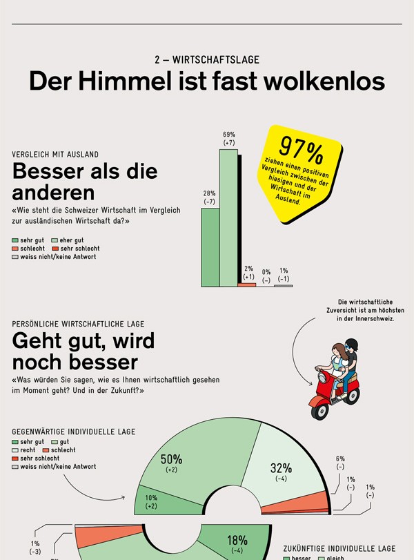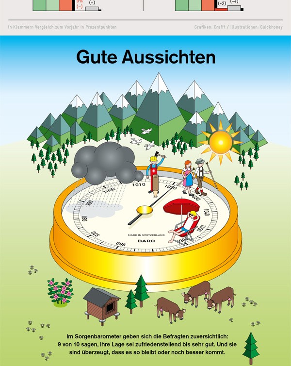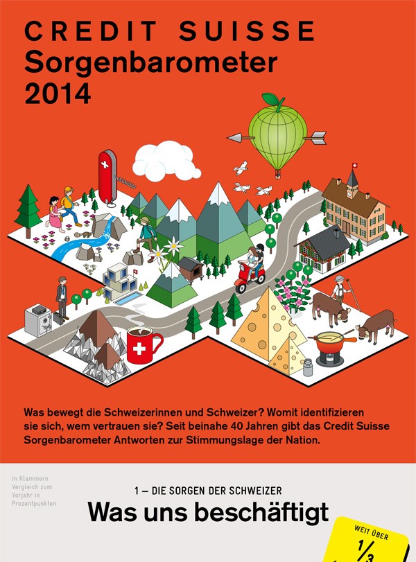 Die Schweizer sind im Grossen und Ganzen ein zufriedenes Volk. Trotzdem blicken nicht alle optimistisch in die Zukunft. Grösste Angst ist die Arbeitslosigkeit, dicht gefolgt von Fragen rund um die Zuwanderung, wie der Sorgenbarometer 2014 der Credit Suisse zeigt.