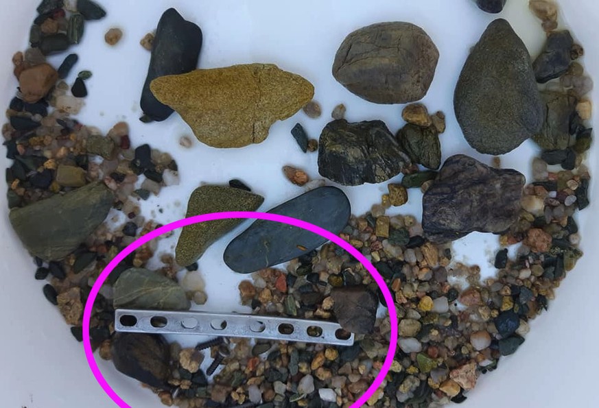 Das Salzwasser-Krokodil namens «MJ», das im Nordosten Australiens auf einer Farm in der Nähe des Korallenriffs Great Barrier Reef zuhause war, starb nach einem Kampf mit einem anderen Krokodil. Anschliessend schnitten es Helfer auf, um die genaue Todesursache zu klären. Dabei wurden ausser der etwa zehn Zentimeter langen Platte auch noch sechs Metallschrauben gefunden.