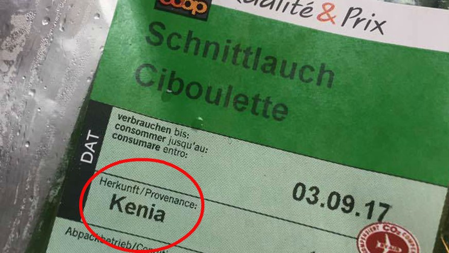 Eine Freundin der Kundin stellte ein Foto des Import-Schnittlauchs auf Facebook und konfrontierte Coop damit: «Könnt ihr mir erklären, wieso ihr jetzt, im Sommer, Schnittlauch aus Kenia verkauft, per Flugzeug eingeflogen? Das ist einfach nur bescheuert! Und die CO2-Kompensation ein schlechter Witz», so ihre Message an den Grossverteiler.