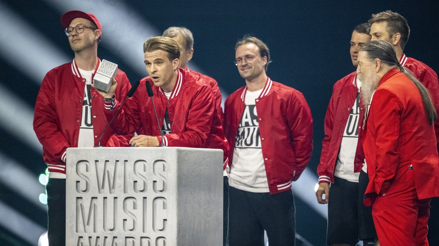 The Band Stubete Gaeng wins the best streaming artist Award, during the award ceremony of the Swiss Music Awards in Zuerich, Switzerland, May 8, 2024. (KEYSTONE/Urs Flueeler)