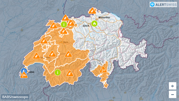 Laut den neusten Alert-Suisse-Warnungen wird wohl die Westschweiz am stärksten von den angekündigten Unwettern betroffen sein. In Basel-Stadt wurde die Warnung für ein Gewitter Stufe 4 ausgesprochen, in Neuenburg, Bern und dem Wallis seien schwere Gewitter und heftige Sturmböen möglich.