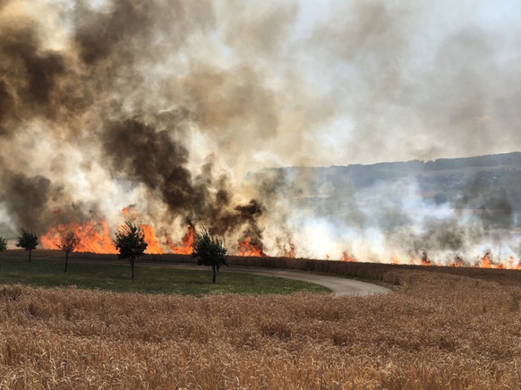 Der Brand war nach 16 Uhr unter Kontrolle. Laut dem Sprecher waren auf dem Feld Arbeiten im Gange, als ein Mähdrescher Feuer fing. Dieses vermochten die Arbeiter zu löschen, sie konnten aber nicht verhindern, dass die Flammen auf das Feld übergriffen.