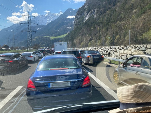 Die Autokolonne auf der A2 in Richtung Süden staute sich zwischen Altdorf und Göschenen UR. Als Umleitung wurde die A13 über den San-Bernardino-Tunnel empfohlen. Reisenden nach Italien wurde zusätzlich die Alternativroute über die A9 via Simplon oder Grosser Sankt Bernhard sowie der Autoverlad am Lötschberg nahegelegt.