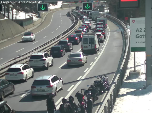 • Rund um Ostern staut es jeweils vor dem Gotthardtunnel – zuerst Richtung Süden, dann Richtung Norden. Schon vor den offiziellen Feiertagen kam es zu Wartezeiten. Am Mittwoch betrug die Staulänge zur Spitzenzeit 13 Kilometer.